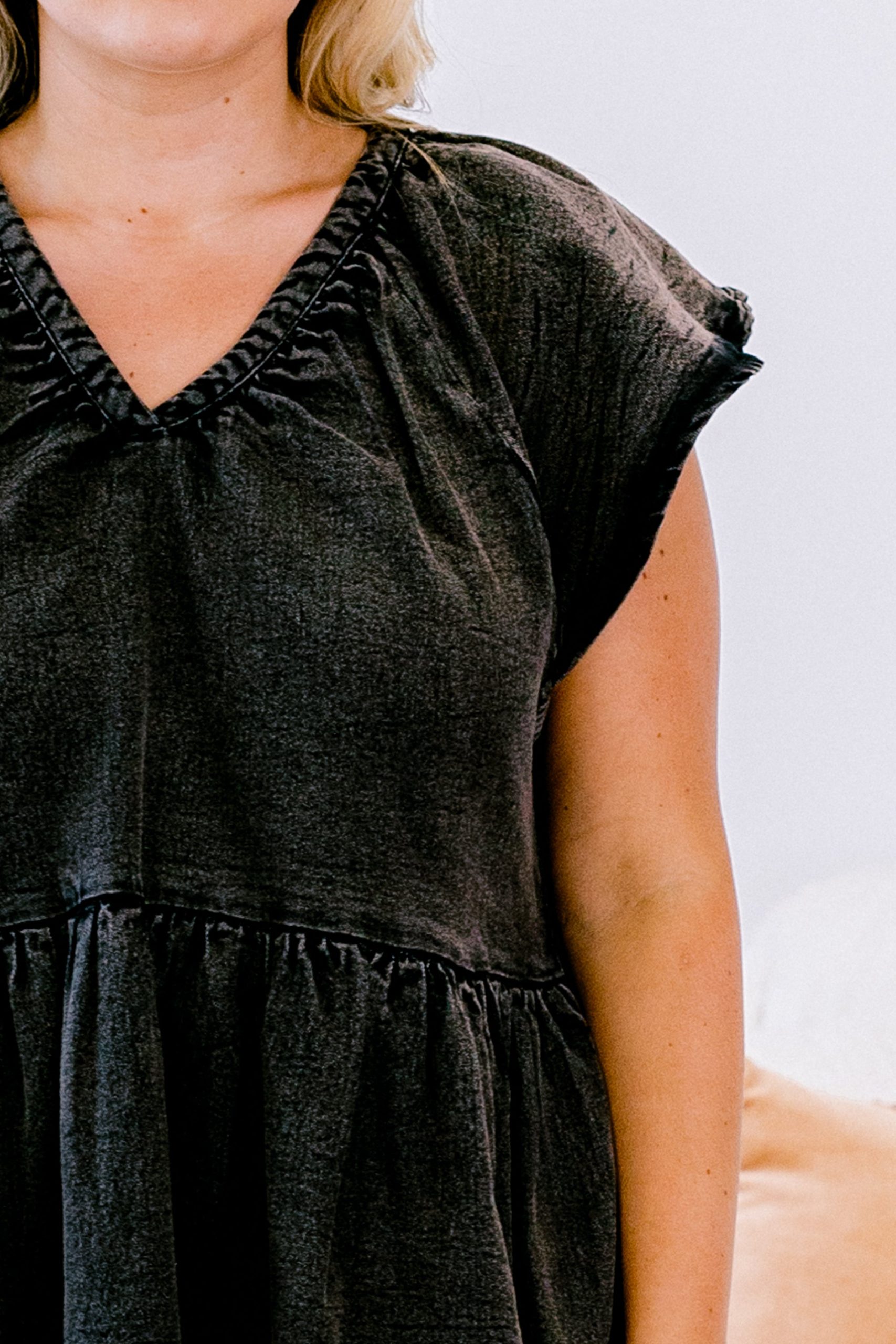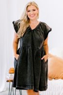 Experience playful elegance with the Joy of Simplicity Dress in black! Crafted from soft mineral wash fabric, it offers a relaxed, vintage-inspired look! The flutter sleeves and v-neckline bring a flirty vibe, while the babydoll silhouette flows effortlessly for comfort and style! Handy pockets add a fun and functional touch to this easygoing favorite!