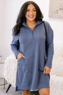 Rock the perfect balance of comfort and style in this dress! This light navy sweatshirt dress features a collared quarter zip neckline and convenient pockets, making it the ultimate combination of functionality and fashion! With its high low hemline, you’ll be sure to turn heads wherever you go!