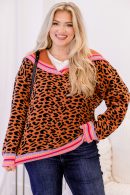 Experience cozy comfort with this sweater in leopard, featuring a striking multicolored stripe contrast collar, hemline and cuffs! This butter-soft pullover wraps you in warmth while adding a playful touch to your look, perfect for brightening up any day with effortless style!